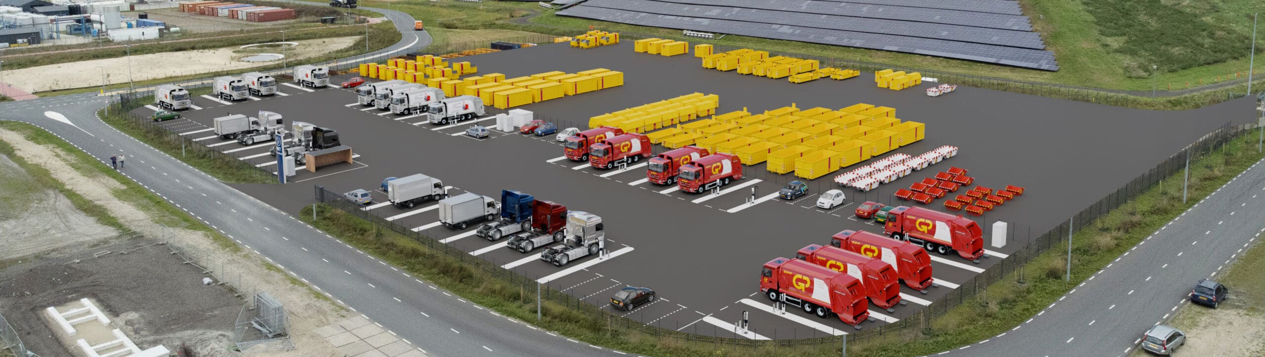 Het laadplein is dus niet alleen bedoeld voor de eigen vloot van GP Groot, maar ook voor andere transportbedrijven. Bedrijven in de regio kunnen hun elektrische vrachtwagens hier veilig en professioneel opladen, zonder afhankelijk te zijn van de beperkte capaciteit van het stroomnet. Zij huren daarbij een eigen plek die 24 uur per dag en 7 dagen per week tot hun beschikking staat.